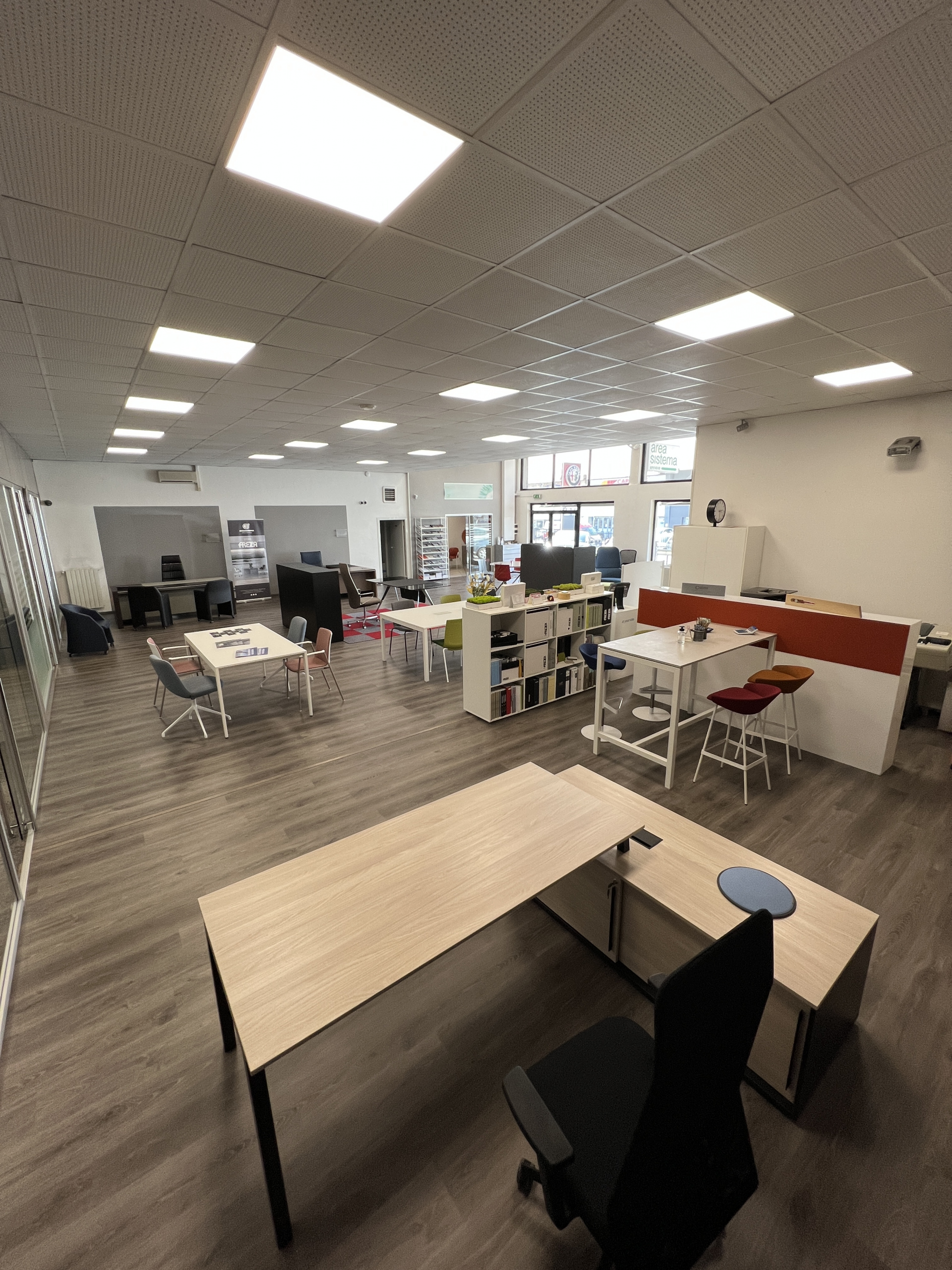 La salle d’exposition de 375 mètres carrés est une monomarque de Frezza : elle comprend une zone de détente et de réunion, et est un espace en évolution constante.