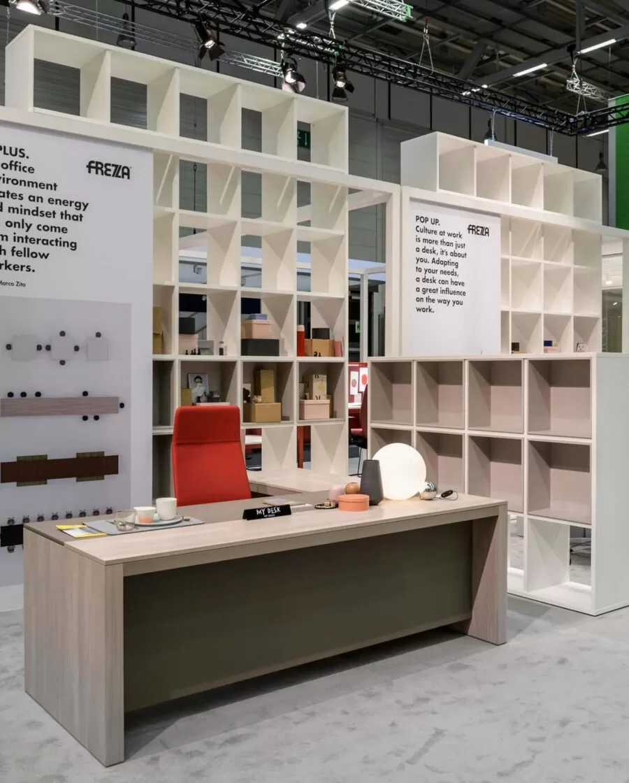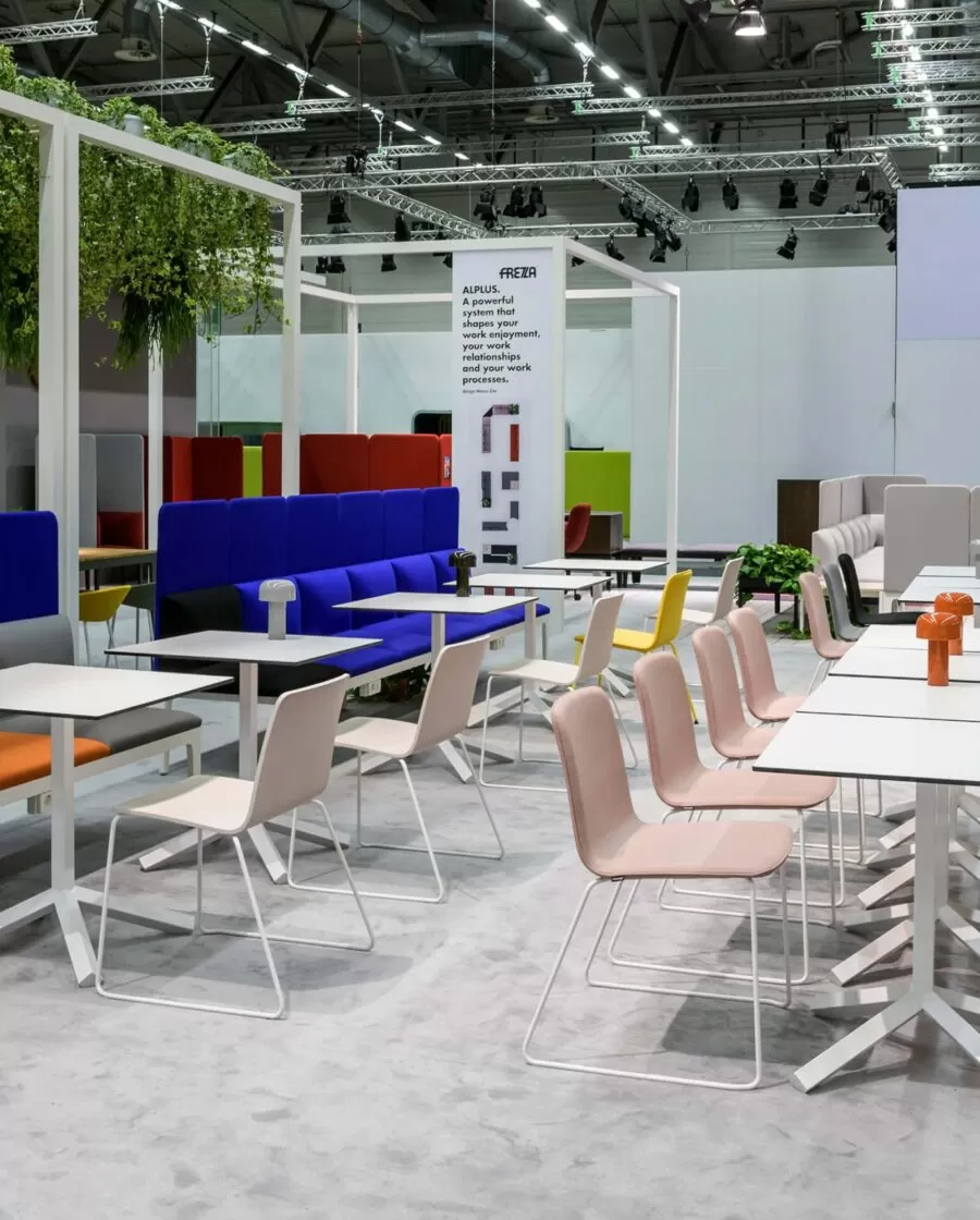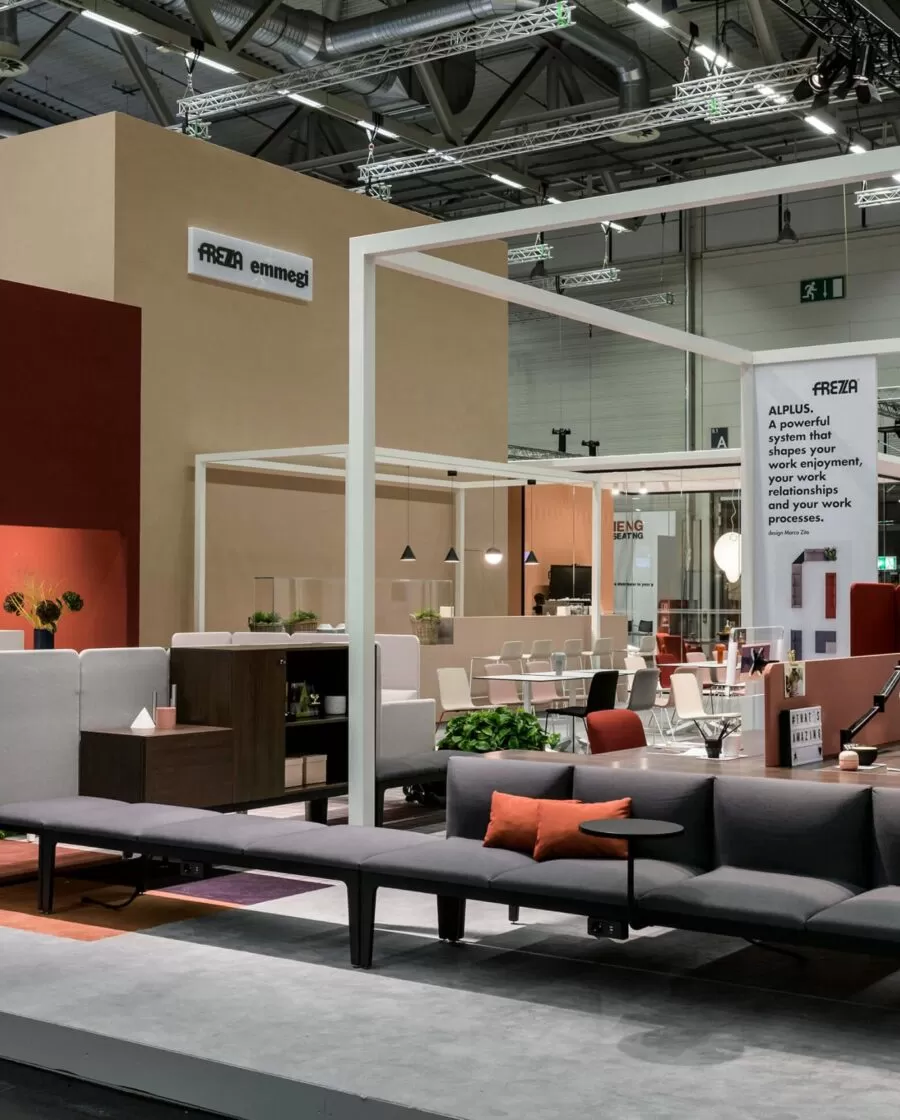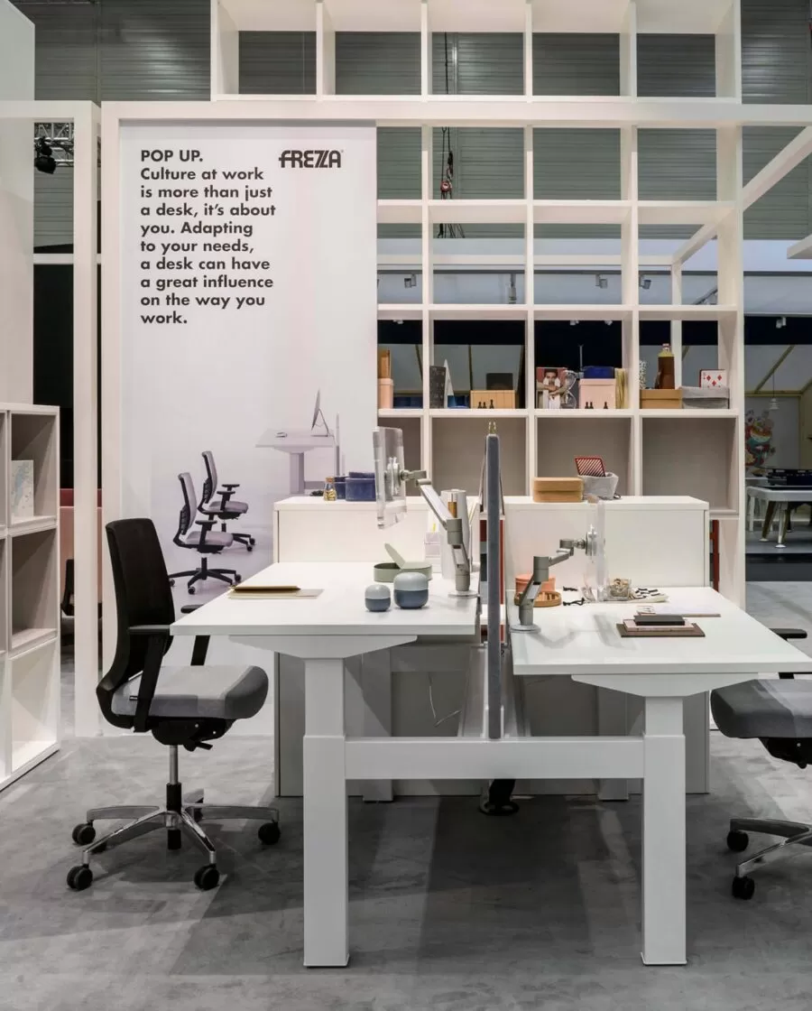 Frezza a relevé le défi en présentant plusieurs collections pour soutenir ces thèmes, comme l’évolution du système alplus conçu par l’architecte Marco Zito, destiné aux lieux de travail flexibles où les loisirs et le travail se confondent de plus en plus. Le programme comprend des bancs, des fauteuils, des canapés, mais aussi de nouveaux systèmes pour les réunions informelles tels que le Meeting pod, ainsi que des tables de réunion et de co-travail. L’extension de la collection de pointes, conçue par Giorgio Topan, reprend le thème du bureau intelligent attentif au bien-être de son utilisateur. Spike est un programme exécutif qui se distingue par l’intégration d’un système sit-stand de l’extension latérale du bureau : un système d’élévation qui permet de changer la hauteur de votre poste de travail en quelques secondes. Des matériaux et des finitions de haute qualité confèrent à la collection un fort impact esthétique. Pour faciliter la conception d’espaces de travail modernes avec style et personnalité, le nouveau système de bureau be.1 (design Progetto CMR) comprend une variété de configurations qui répondent aux besoins de partage, de collaboration ou de concentration maximale en garantissant la confidentialité et l’ergonomie. Fonctions également supportées par la table pernsato circulaire (G. Topan), elliptique ou circulaire, multifonctionnelle pour répondre aux besoins de collaboration, de flexibilité et de travail intelligent.