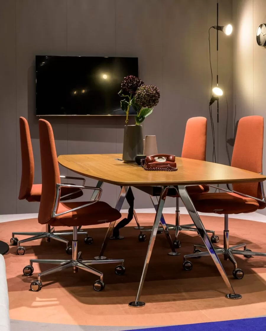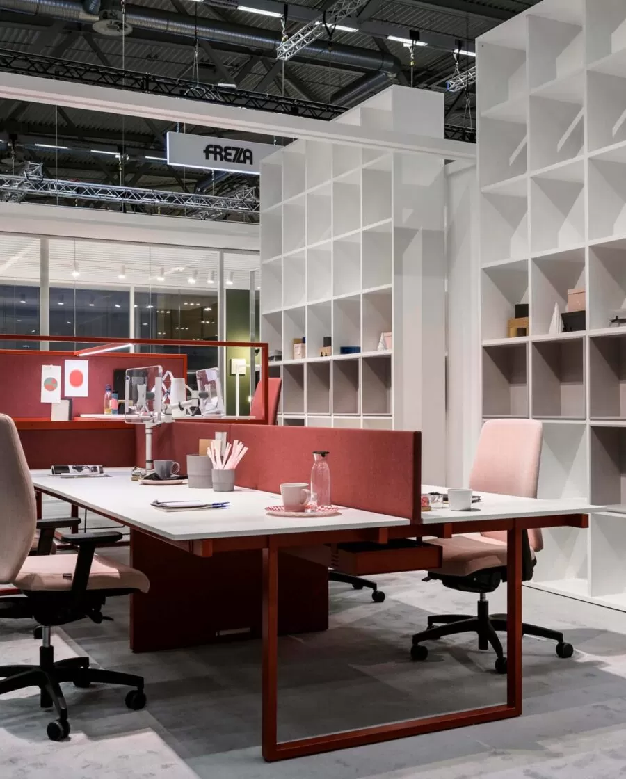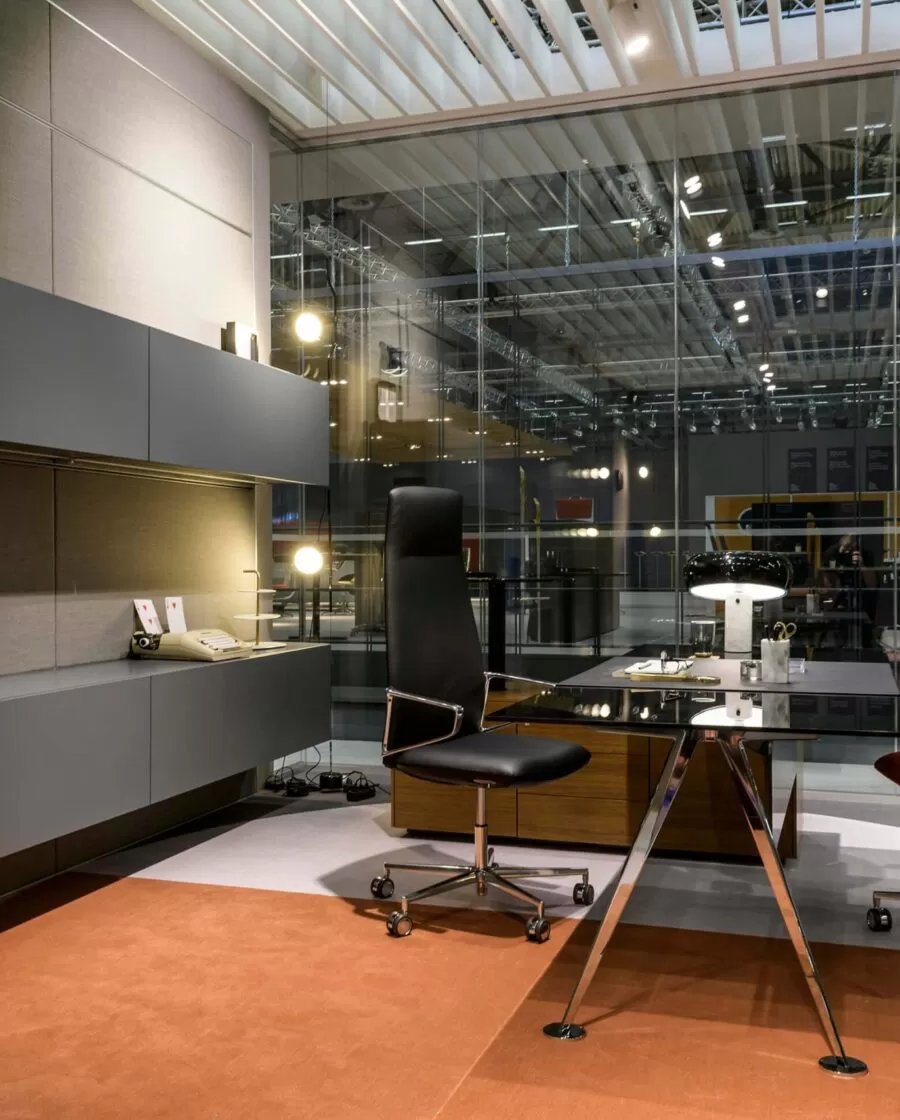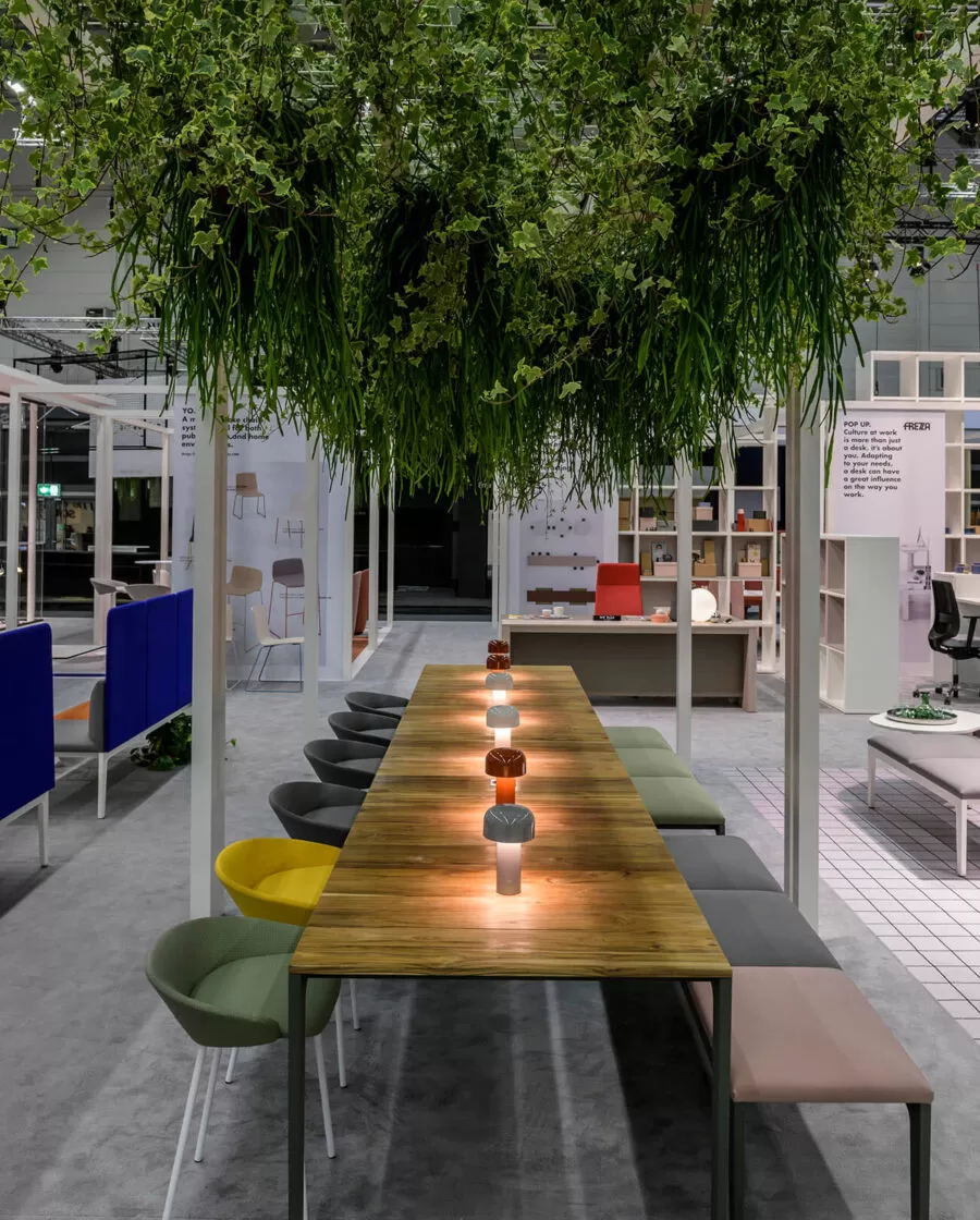 Frezza a relevé le défi en présentant plusieurs collections pour soutenir ces thèmes, comme l’évolution du système alplus conçu par l’architecte Marco Zito, destiné aux lieux de travail flexibles où les loisirs et le travail se confondent de plus en plus. Le programme comprend des bancs, des fauteuils, des canapés, mais aussi de nouveaux systèmes pour les réunions informelles tels que le Meeting pod, ainsi que des tables de réunion et de co-travail. L’extension de la collection de pointes, conçue par Giorgio Topan, reprend le thème du bureau intelligent attentif au bien-être de son utilisateur. Spike est un programme exécutif qui se distingue par l’intégration d’un système sit-stand de l’extension latérale du bureau : un système d’élévation qui permet de changer la hauteur de votre poste de travail en quelques secondes. Des matériaux et des finitions de haute qualité confèrent à la collection un fort impact esthétique. Pour faciliter la conception d’espaces de travail modernes avec style et personnalité, le nouveau système de bureau be.1 (design Progetto CMR) comprend une variété de configurations qui répondent aux besoins de partage, de collaboration ou de concentration maximale en garantissant la confidentialité et l’ergonomie. Fonctions également supportées par la table pernsato circulaire (G. Topan), elliptique ou circulaire, multifonctionnelle pour répondre aux besoins de collaboration, de flexibilité et de travail intelligent.