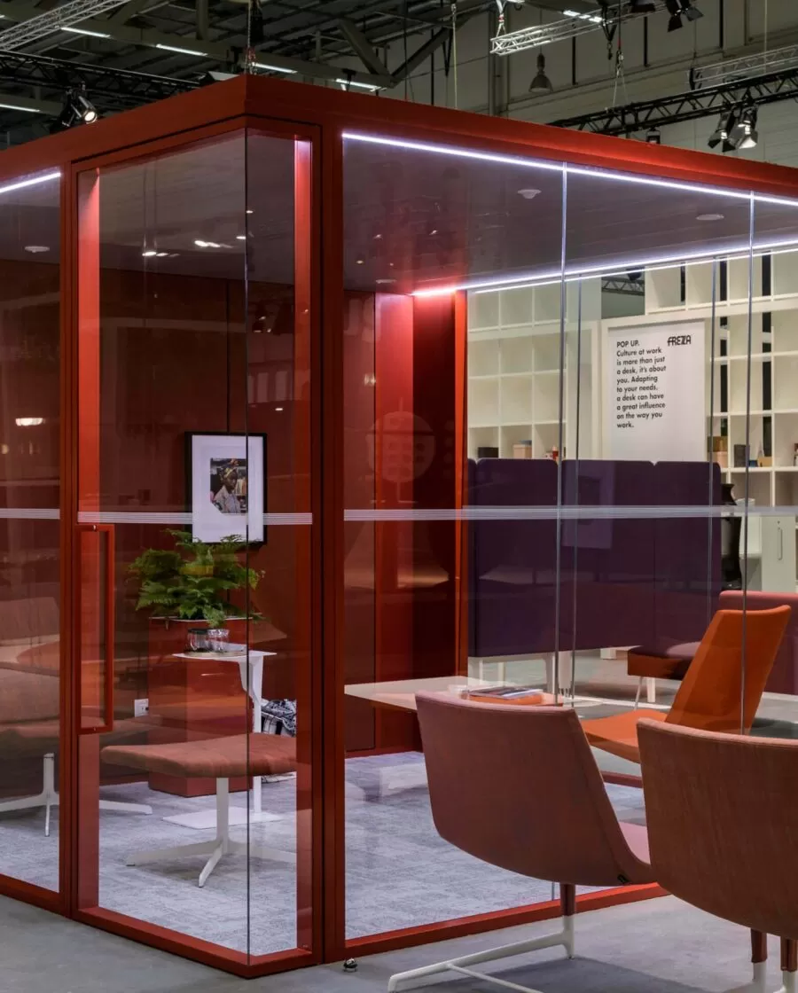 Les performances et l’acoustique des espaces ouverts ont été interprétées par Frezza avec la cloison k82 et My Room, une pièce tranquille idéale pour créer des zones privées.